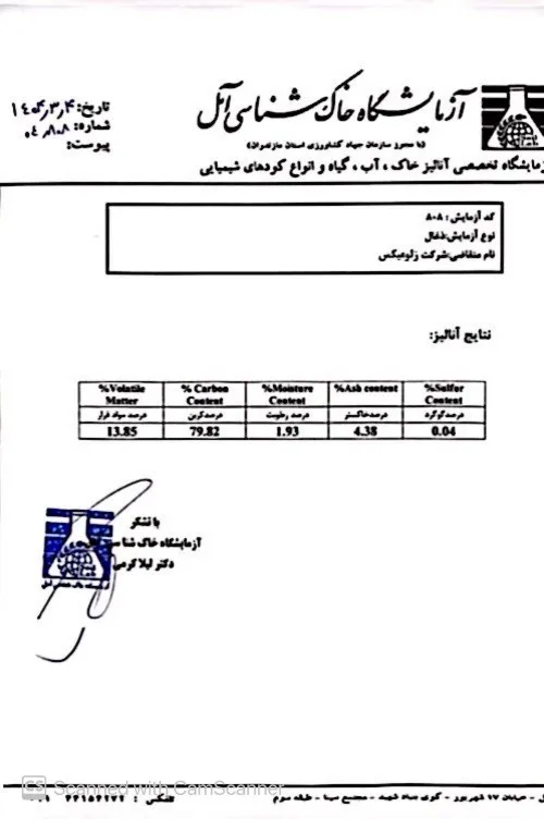 في الأسفل يمكنكم الاطلاع على نموذج لاختبار جودة الفحم الذي يتم تصديره من إيران.